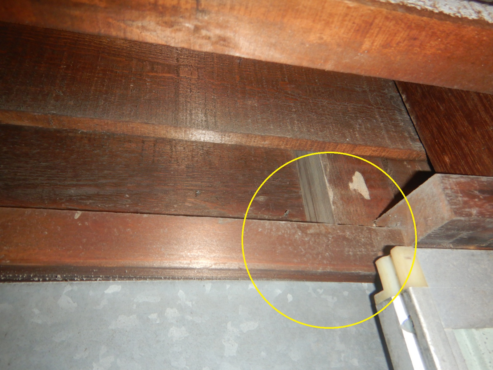 戸袋内に入ったネズミが、この様な隙間から天井裏に侵入していると思われます。 -