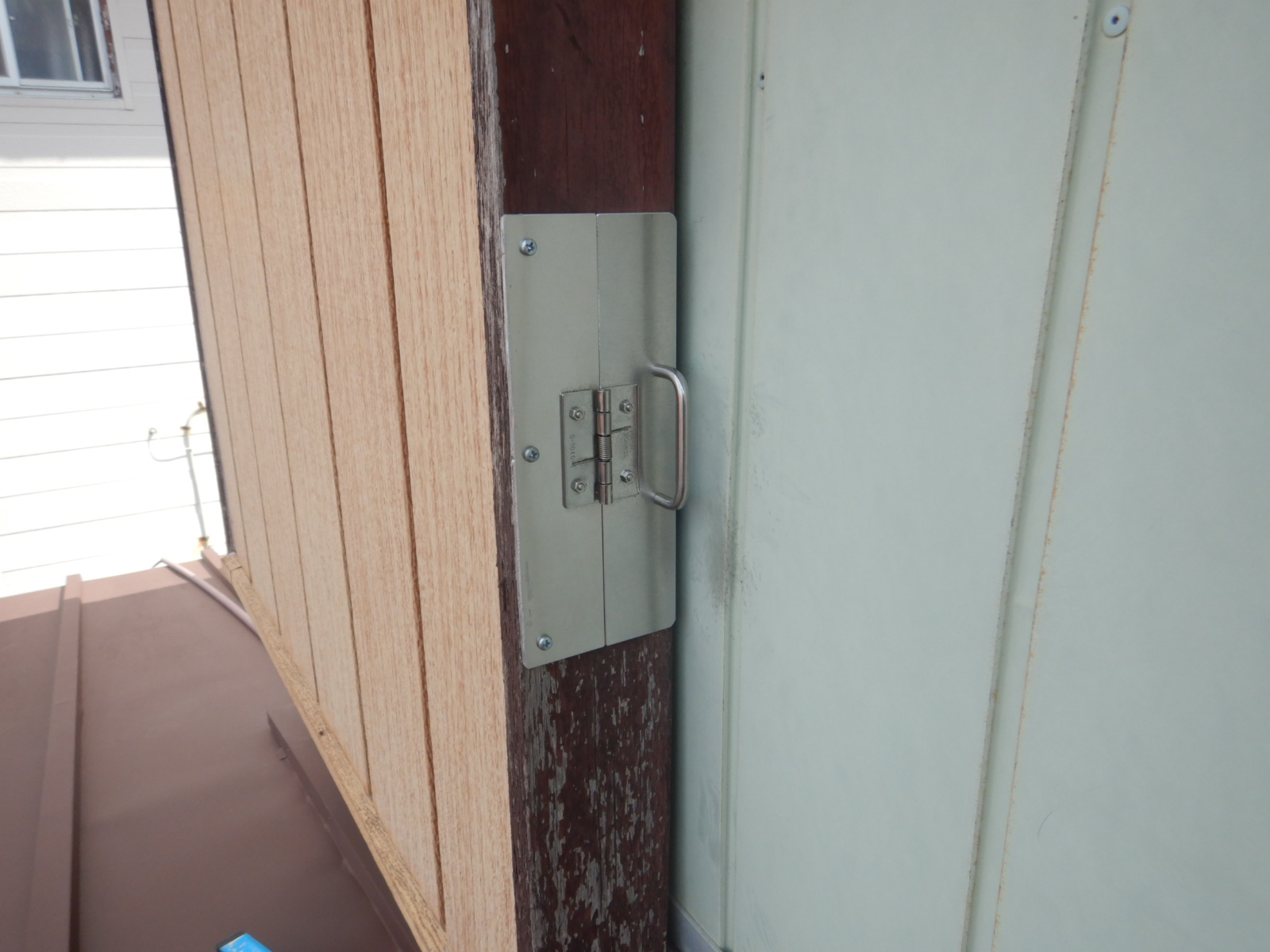 この戸袋には、雨戸取り出し口に『戸袋ラットガード』の取付けを行い、ネズミの侵入を防ぐ対策を行いました。 -