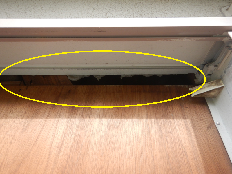こちらの戸袋も、雨戸取り出し口付近にネズミの足跡(ラットサイン)が見られました。 -