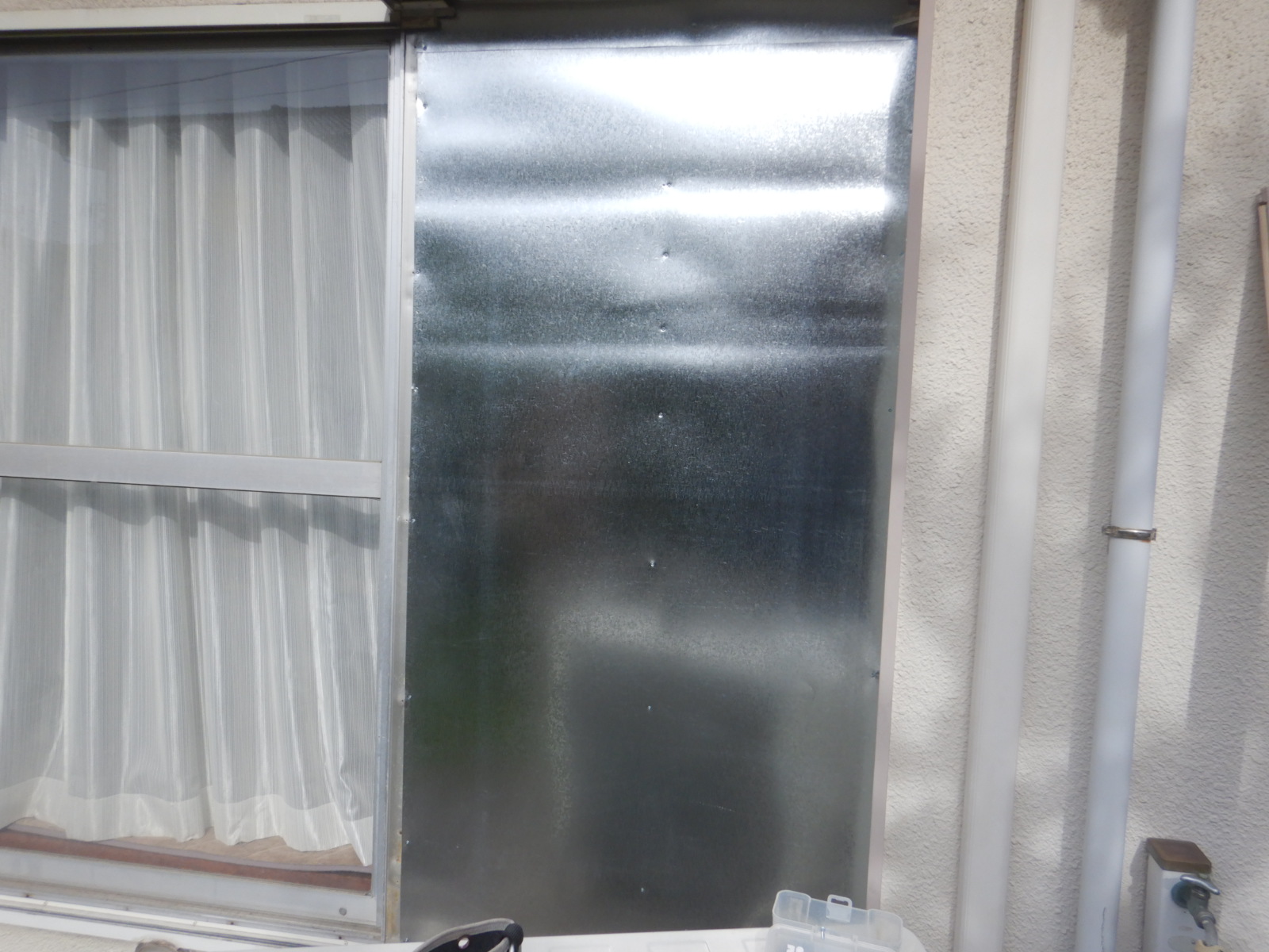 また、内壁自体がが薄いべニア板だった為、内壁全体にトタン板の取付けを行いました。