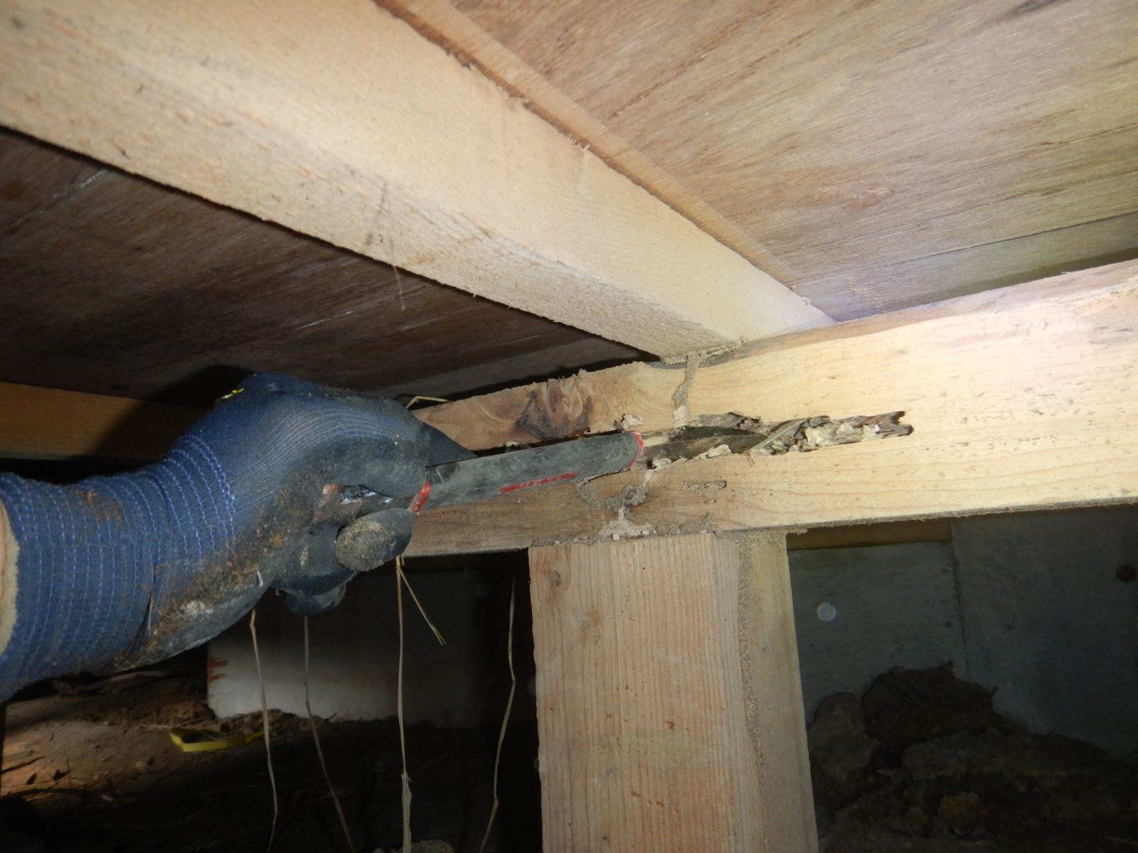 ご相談を頂き、床下を調査したところ、床下にシロアリ被害が多く見られました。