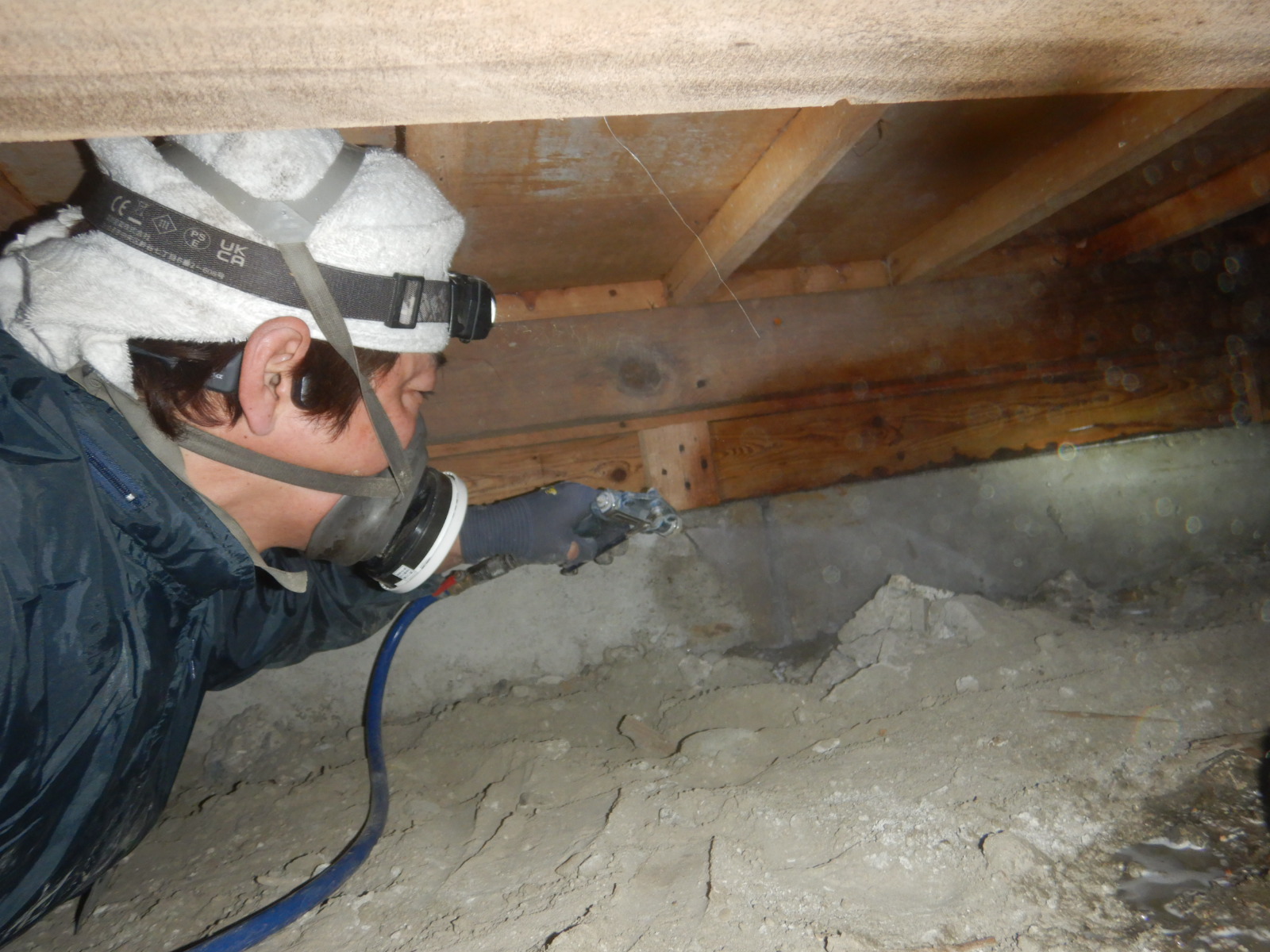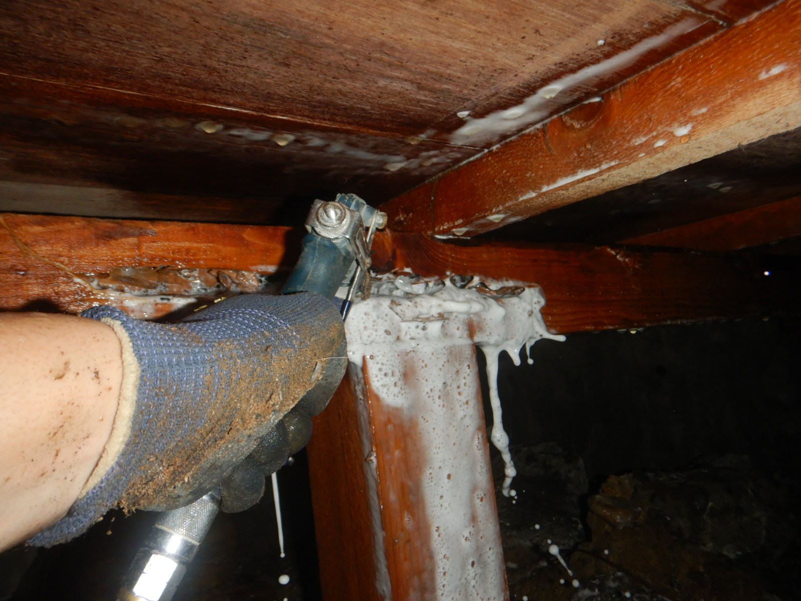 被害が見られた箇所には、薬剤注入処理も行い、しっかりと消毒作業を行います。 -
