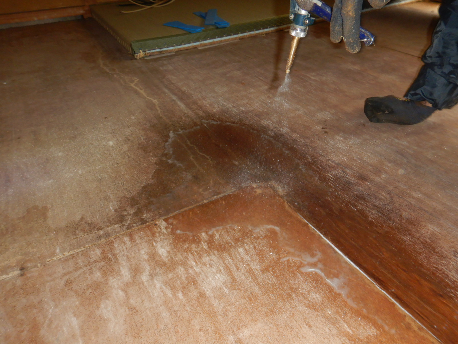 シロアリの被害が見られた、畳下床板にも薬剤散布処理を行いました。 -