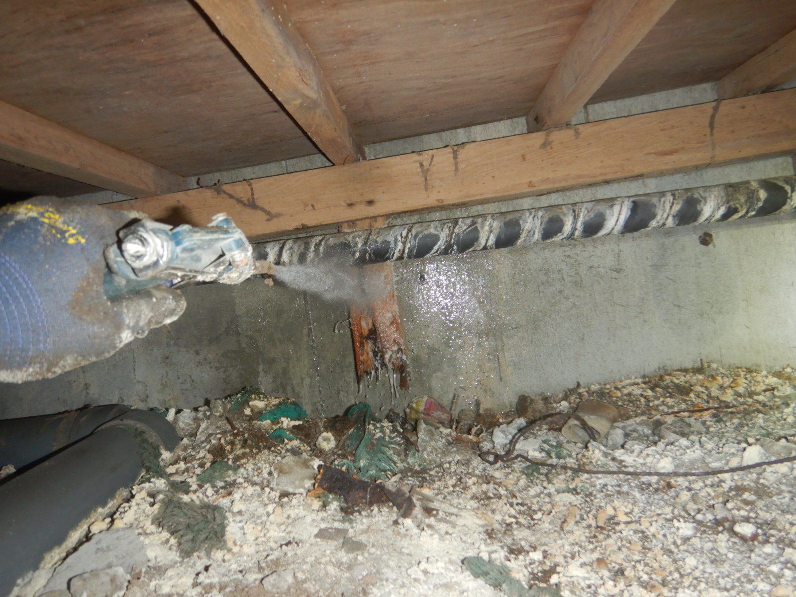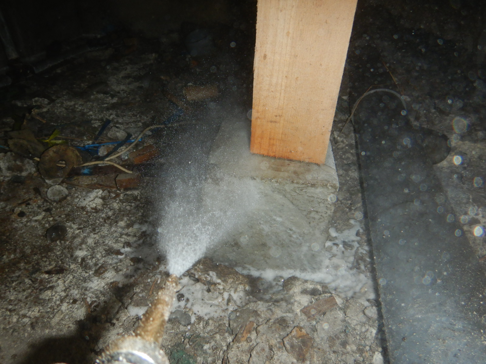 被害箇所ももちろんですが、床下の基礎沿い及び束石周りにもしっかりと薬剤散布処理を行います。 -