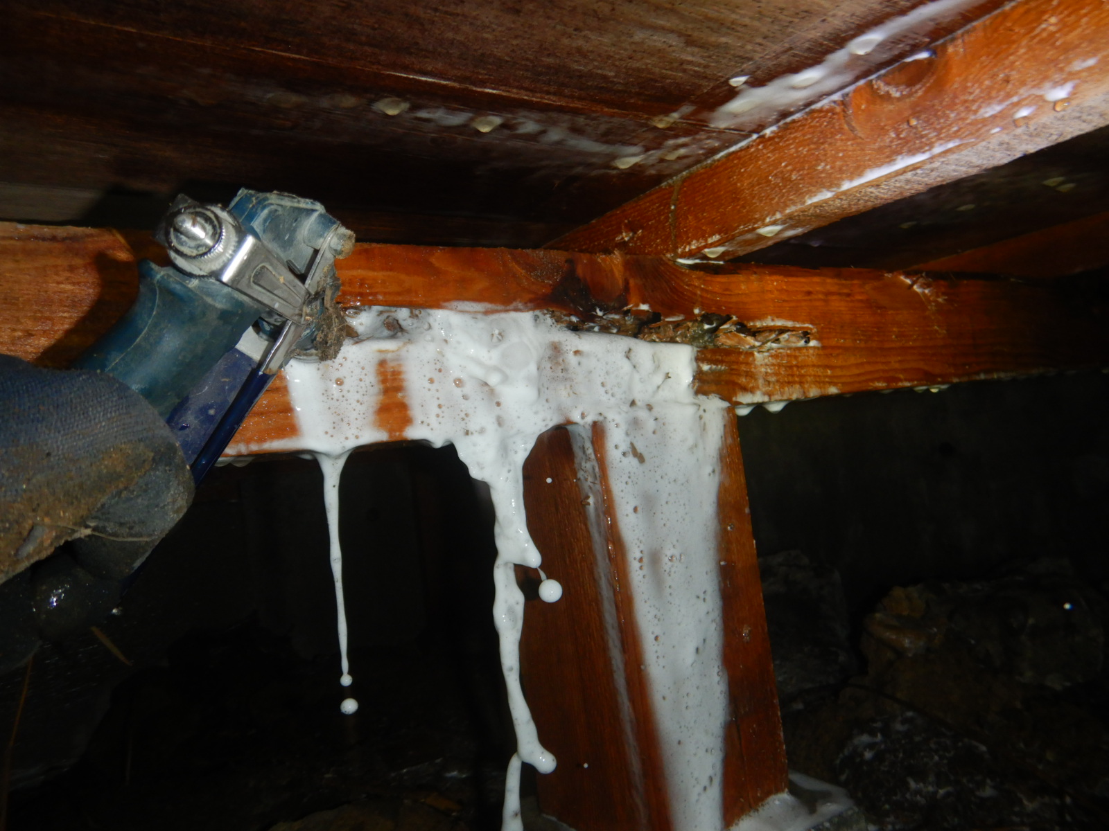 先ほどの隙間から、薬剤を注入し天井を開口することにしました。 -